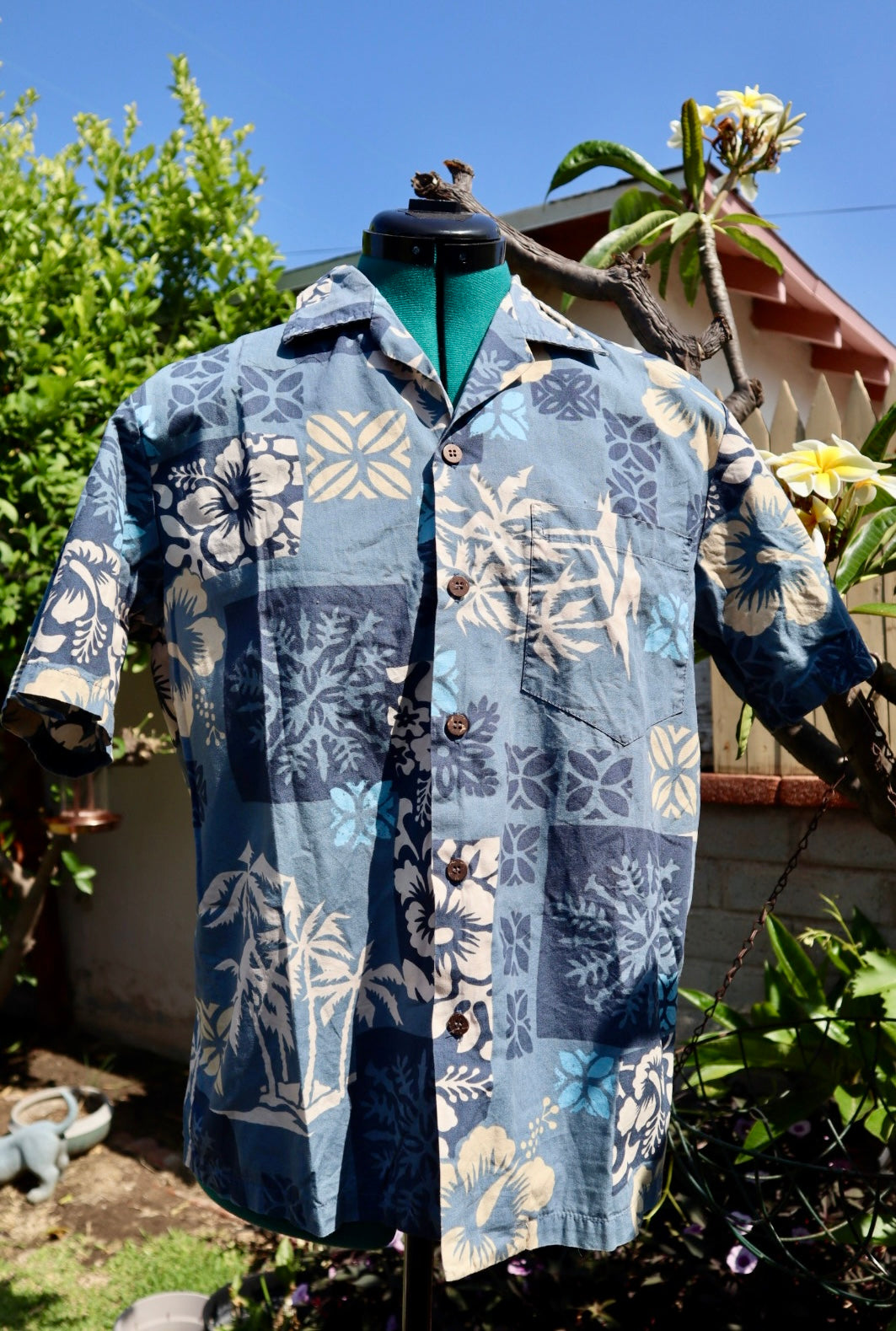 This Hawaiian Reserve Collection shirt features a soft cotton build with a dreamy blue patchwork print of tropical florals, palms, and geometric motifs. Lightweight and relaxed, perfect for beach days, barbecues, or adding a bit of aloha spirit wherever you go.