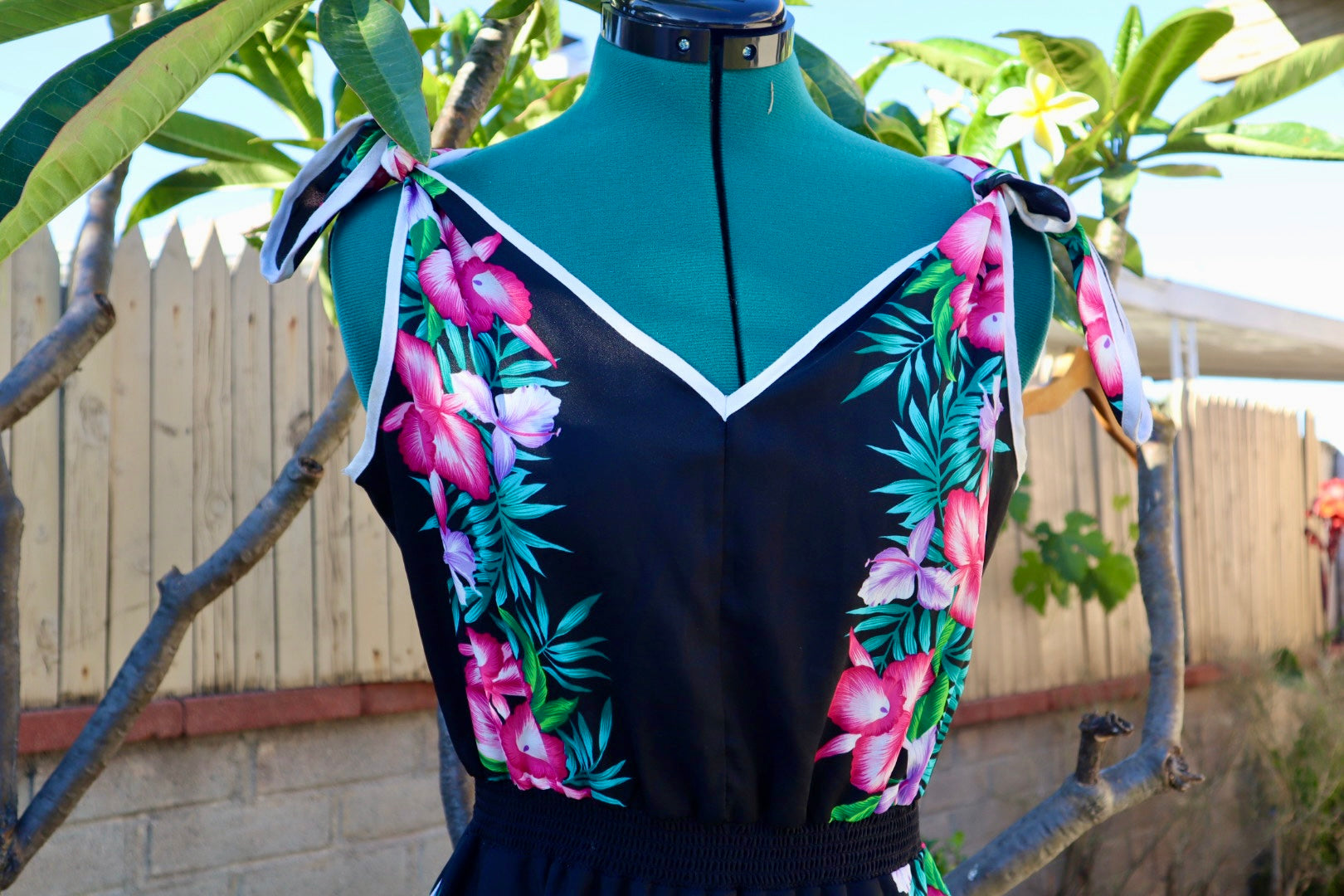 This very flowy and super light dress is perfect for hot summer day! Bold and feminine, perfect for summer vacations, tiki parties, or festival styling. She also has a GREAT stretch to her.